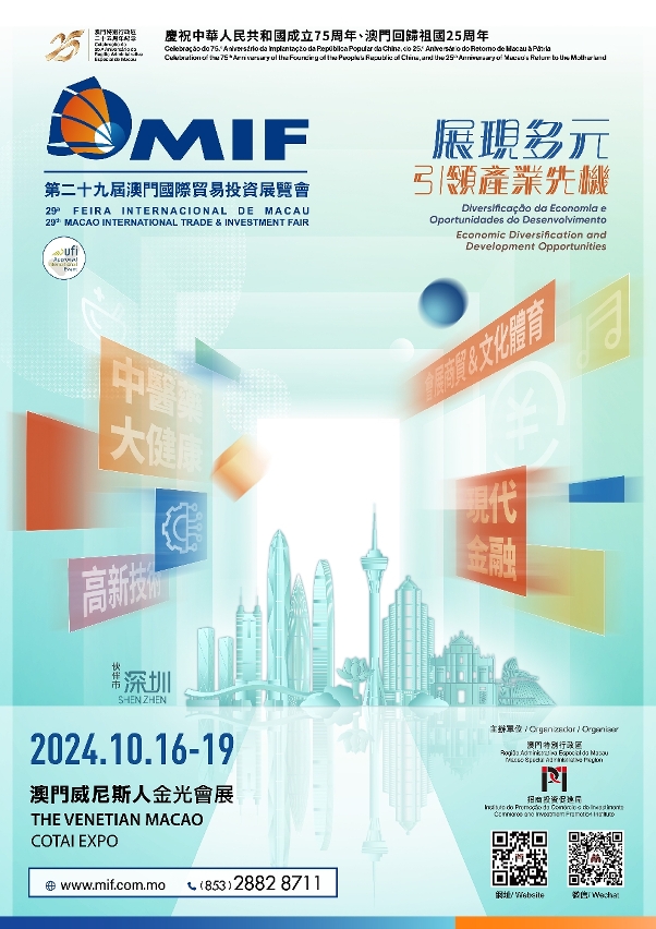 由招商投資促進局主辦的第29屆MIF以“展現多元 引領產業先機”為主題,將與“澳門國際品牌連鎖加盟展2024”(2024MFE)同期同場舉行。