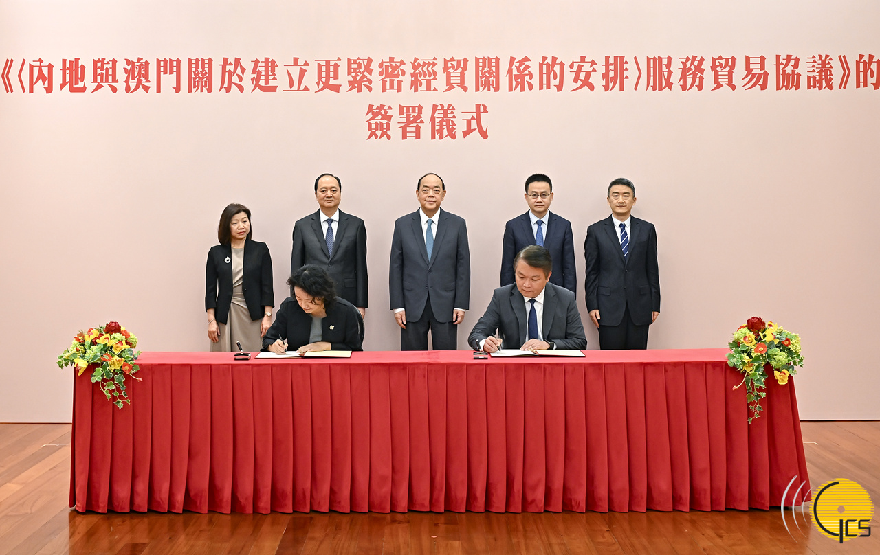 會面後,行政長官見證了經濟財政司司長李偉農與商務部國際貿易談判副代表李詠箑代表雙方簽署關於修訂《〈內地與澳門關於建立更緊密經貿關係的安排〉服務貿易協議》的協議二。