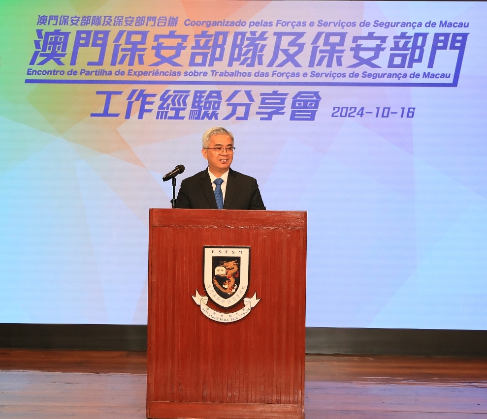 為砥礪警察精神,營造良好的警隊文化氛圍,於10月16日上午,澳門保安部隊高等學校舉辦“2024澳門保安部隊及保安部門工作經驗分享會”,邀請來自保安範疇不同部門的人員交流工作心得、分享經驗成果。保安司司長黃少澤、警察總局局長梁文昌、澳門海關關長黃文忠、校董會成員、學術及教學委員會成員,以及保安範疇各部門領導和各級人員代表出席,並在各保安部隊及保安部門設有15個直播點,線上線下合計逾700人參與。
