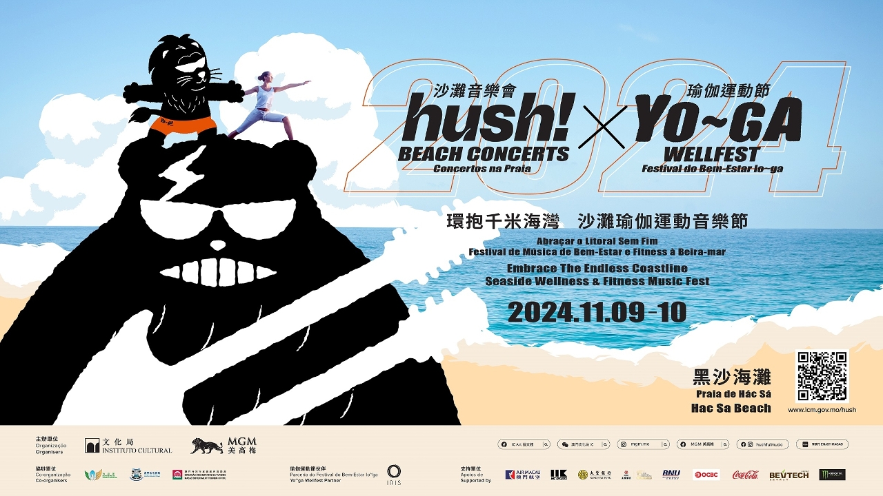 由文化局與美高梅合辦,旅遊局、市政署、海事及水務局協辦的“hush! 沙灘音樂會 x Yo~ga 瑜伽運動節2024”,主活動將於11月9日至10日(周六、日)在黑沙海灘舉行,11月2日起率先帶來一系列前奏節目,為公眾呈獻多項精彩演出及獨特的文化體驗,進一步拓展大型流行音樂與瑜伽運動戶外跨界盛事的多元魅力。