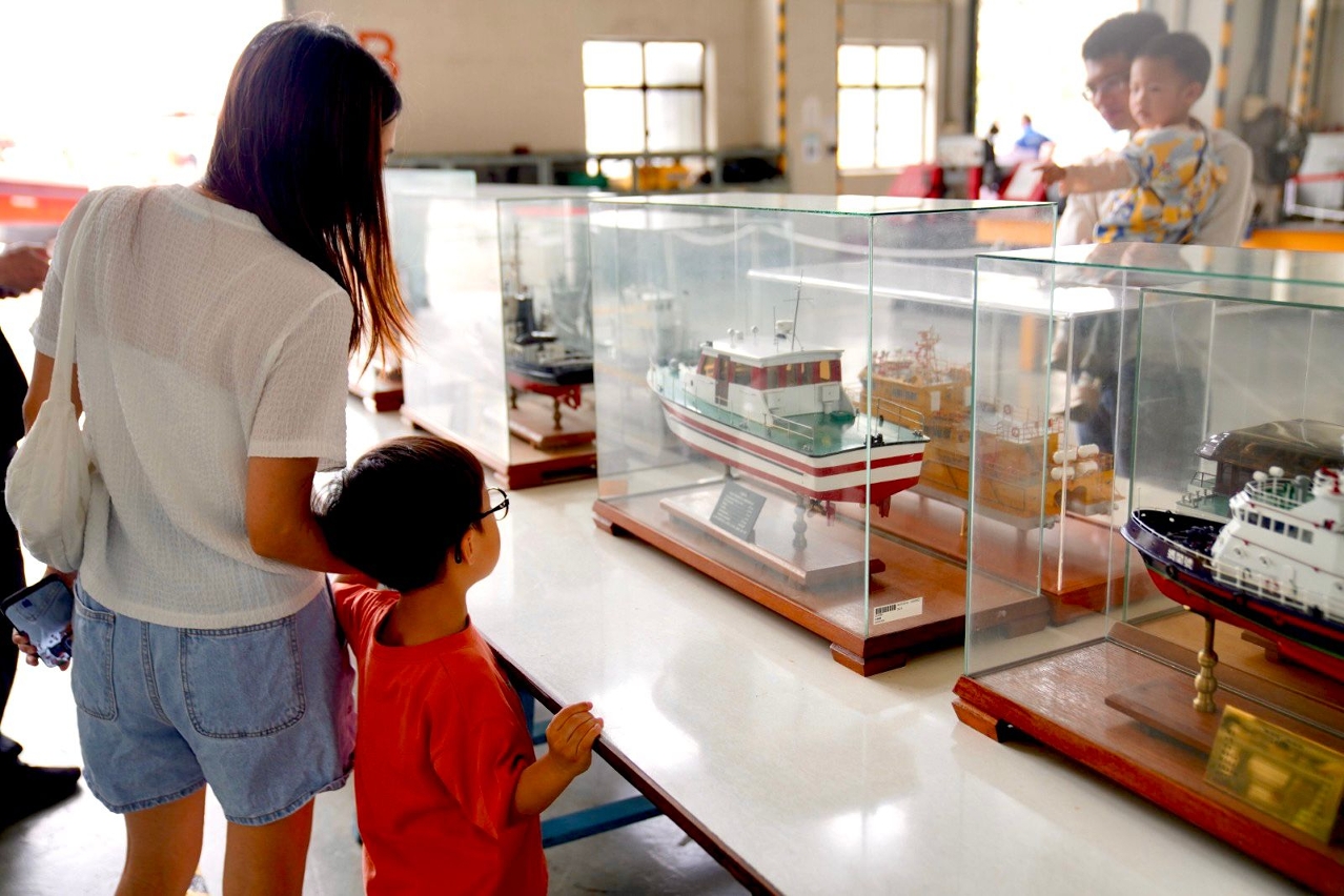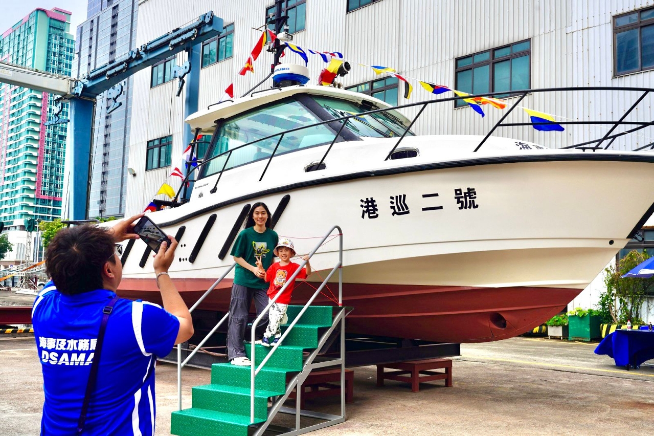 “海事同樂日”今日在政府船塢舉辦,為“揚帆啟航海事節2024”的重點活動之一。活動現場設有多個以海事安全為主題的攤位遊戲,亦有模擬射水炮,讓小朋友親身體驗海上救援工作,並展出救援船、快艇、模型船、救生筏、航標設施、水文探測設備等,市民踴躍登上架放在陸地上的大型海事救援船參觀,了解救援船結構、救援設備及駕駛室設施,而模擬射水炮亦深受小朋友歡迎,積極參與體驗海上救援工作,活動吸引了近6,000人次入場參與。
