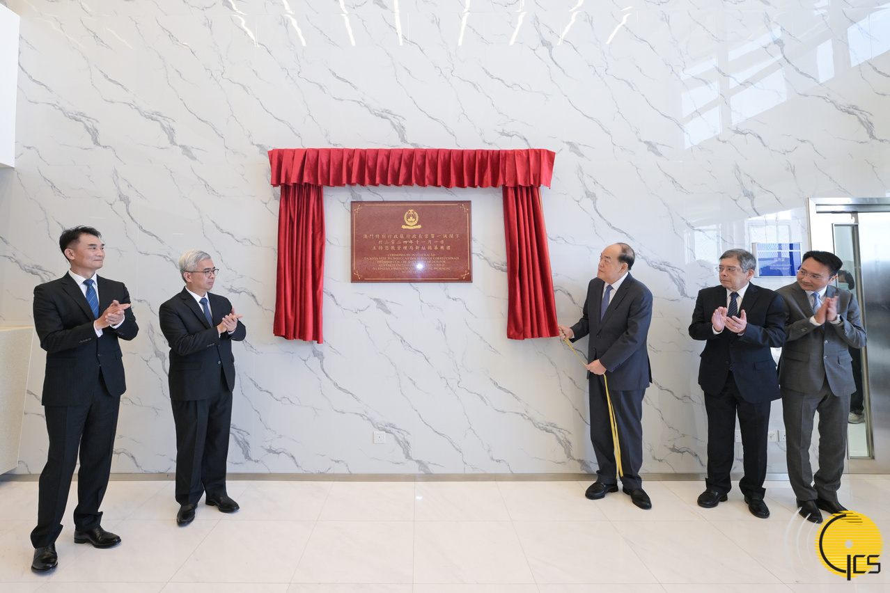 位於路環九澳堤壩馬路的懲教管理局新址於11月1日上午舉行揭幕典禮,行政長官賀一誠在保安司司長黃少澤、運輸工務司司長羅立文、懲教管理局局長程况明及公共建設局局長林煒浩主禮嘉賓的陪同下,主持揭幕典禮。