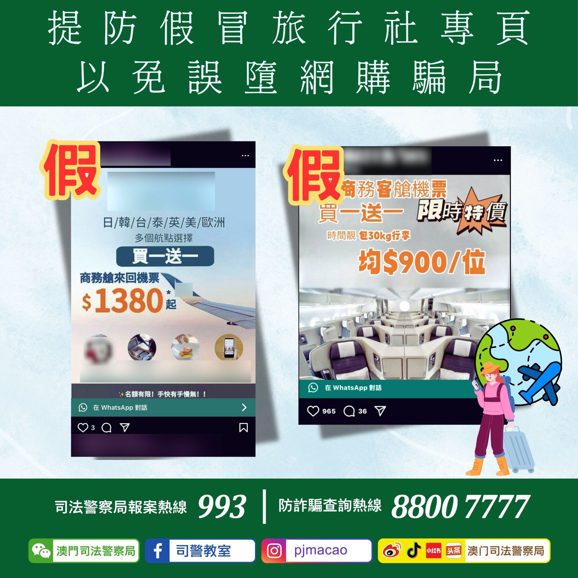 節假日在即,不少市民會選擇出遊歡度假期,司法警察局反詐騙協調中心呼籲市民: