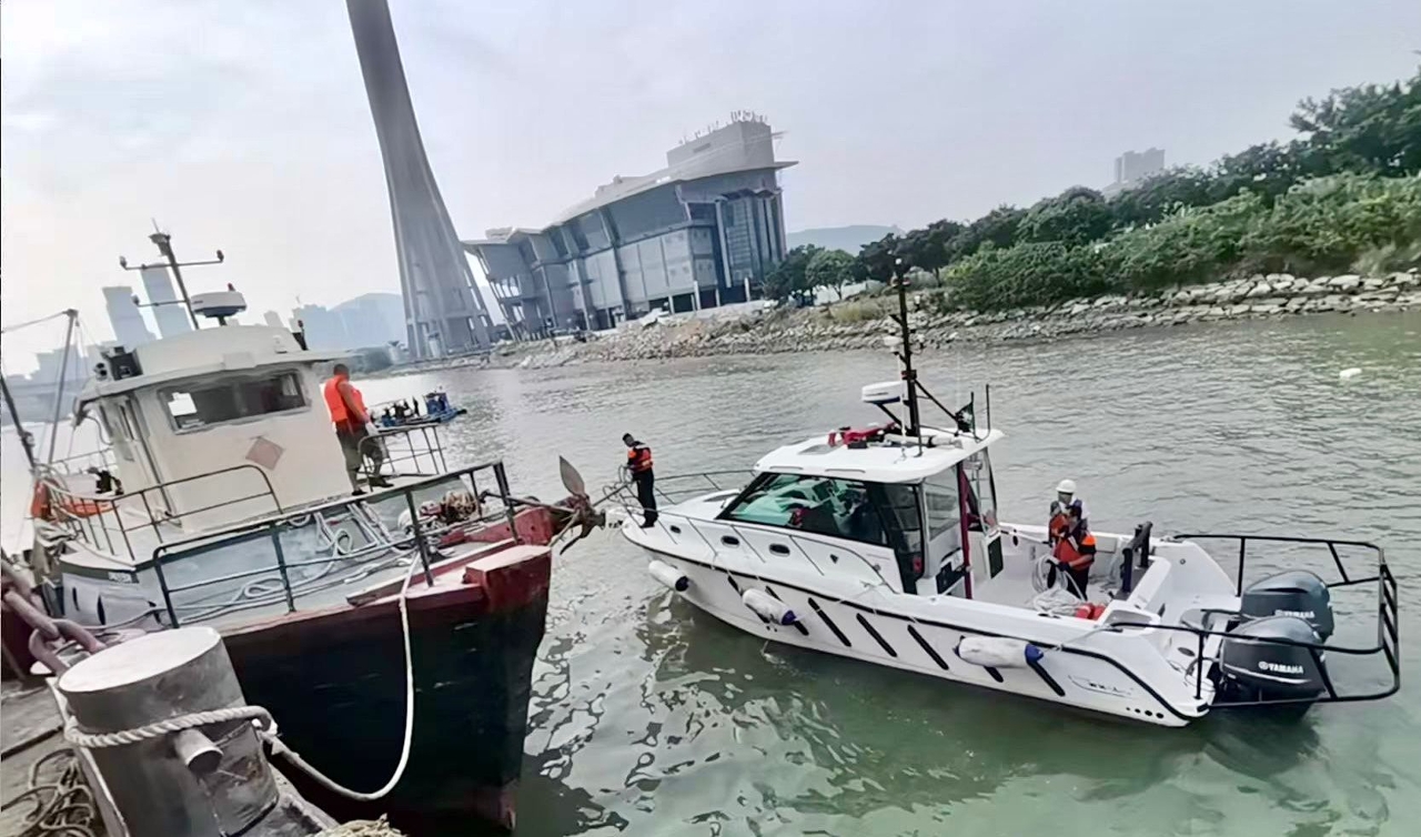 海事及水務局今早(4日)在旅遊塔對開海面,協助吊運船對昨晨碰撞護橋欄後傾側的漁船進行吊運打撈,利用抽水泵等設備,把傾側船隻扶正及吊起,並於今日下午4時完成打撈工作,𦘦事漁船被送往內地維修,打撈作業期間不影響海上通航。