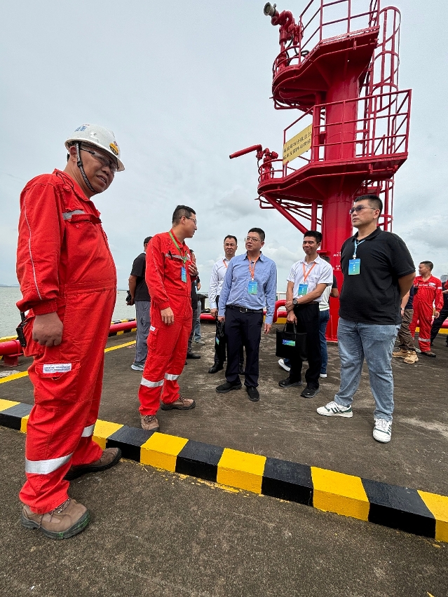 考察團首先到訪深合區中海石油(中國)有限公司深圳分公司-橫琴終端參觀交流,由該司管理層代表介紹橫琴終端在燃氣運輸方面的創新技術和成果,並帶領考察團實地考察和觀摩現場設施。橫琴終端為合作區唯一的天然氣處理終端,是中國海油在粵港澳大灣區重要的海陸能源連接樞紐。而中國海油為澳門唯一的天然氣供應商,通過橫琴終端和下游供氣管網,實現南海天然氣由海路入澳,為澳門安全供氣超過13年,每年供氣超1億方,為供澳能源的穩定和發展作出貢獻。