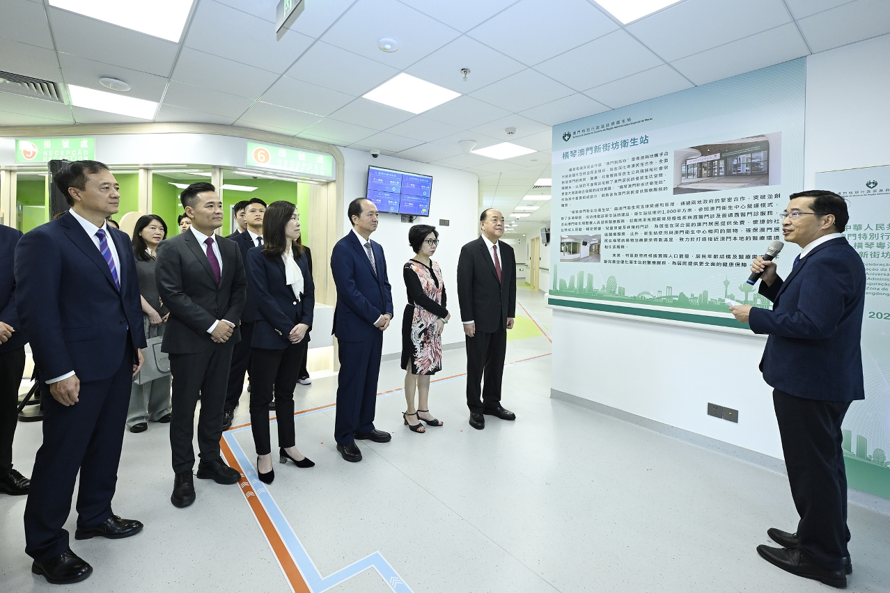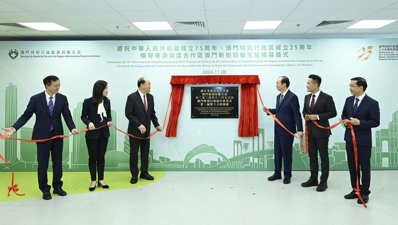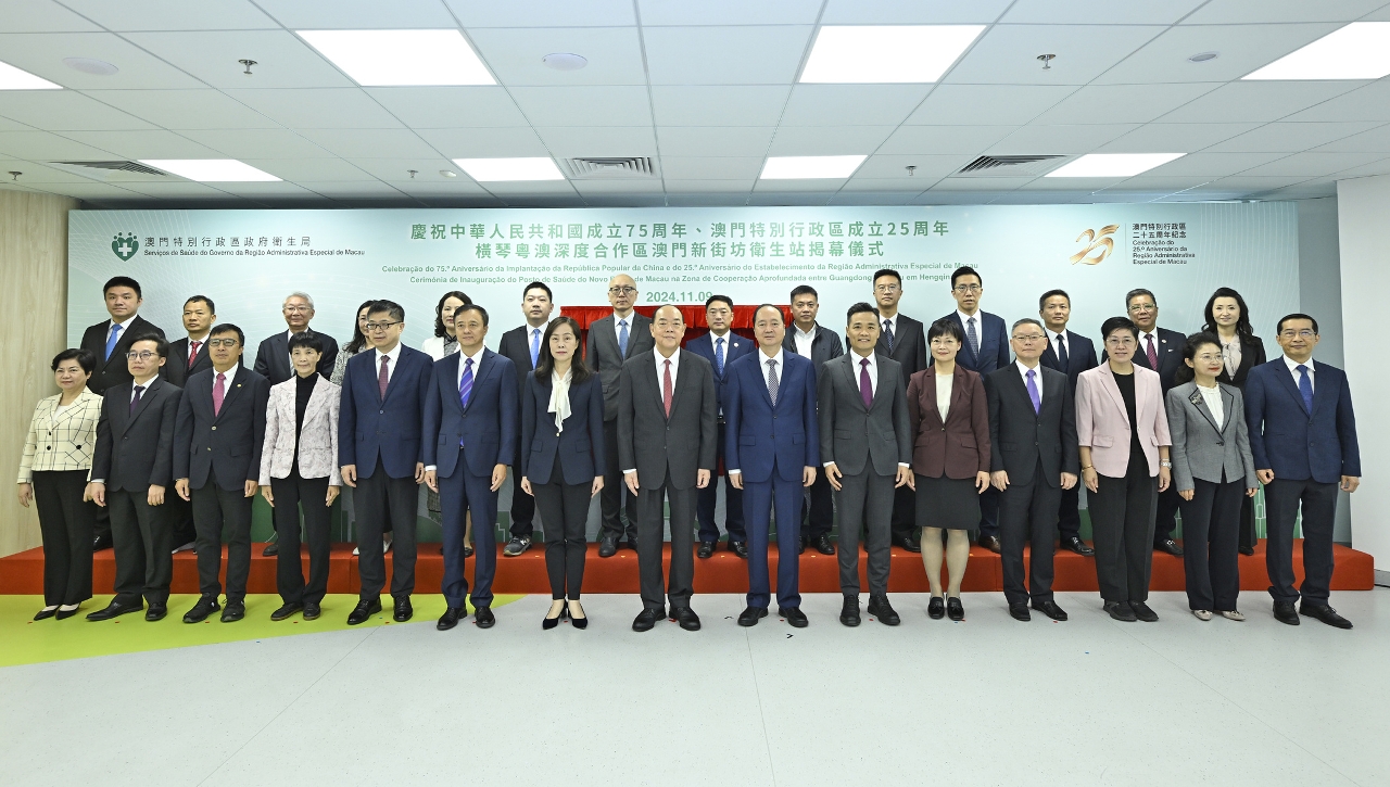 橫琴粵澳深度合作區澳門新街坊衛生站(下稱衛生站)於今(9)日舉行揭幕儀式,澳門特別行政區行政長官賀一誠、中央人民政府駐澳門特別行政區聯絡辦公室主任鄭新聰、澳門特別行政區政府社會文化司司長歐陽瑜、廣東省衛生健康委員會黨組書記劉利群、澳門特別行政區政府衛生局局長羅奕龍和副局長鄭成業,主持了衛生站的揭幕儀式。出席的嘉賓還包括來自內地、澳門特別行政區的政府部門、醫療機構及社團等共約60多名代表。