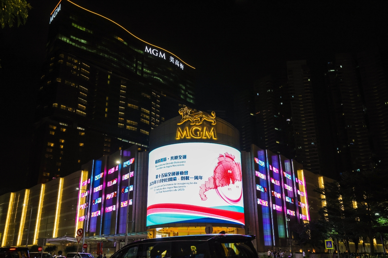為慶祝倒數一周年的重要時刻,粵港澳三地共同舉行迎接十五運會倒計時一周年亮燈活動,於晚上8時至9時,在澳門各標誌性建築物展示慶祝標語“相約灣區 共迎全運”,與廣東、香港一同點亮夜空,共同迎接十五運會和殘特奧會的到來。