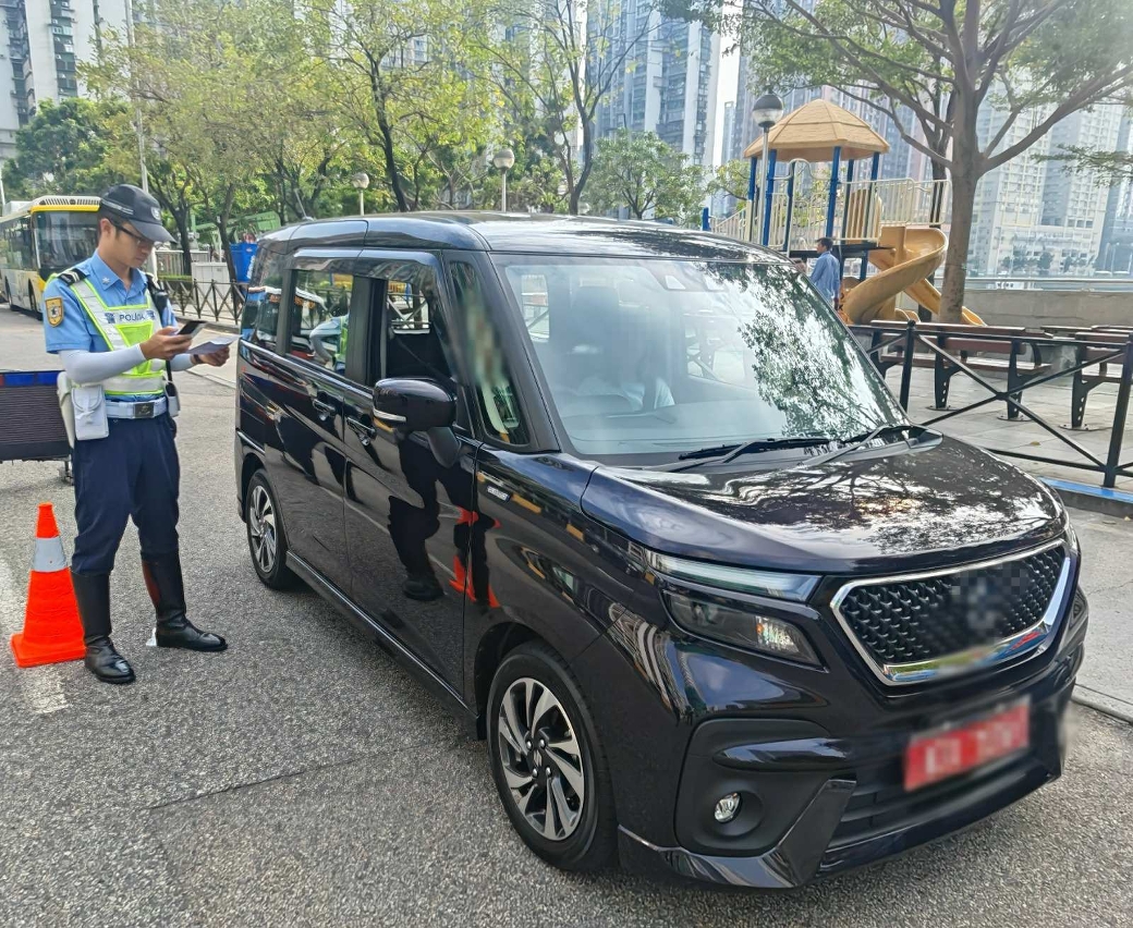 查車行動方面,共截查34輛車輛,合共檢控4宗違例(1宗沒有使用行車燈、1宗電單車駕駛資格未滿一年載客、1宗沒有佩戴安全帶及1宗未能出示有效保險文件)。