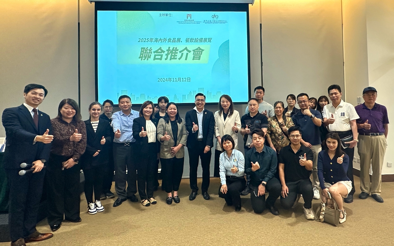 由澳門生產力暨科技轉移中心(生產力中心)和招商投資促進局(招商局)合辦的“2025年海內外食品展、餐飲設備展覽聯合推介會”,已於11月12日在中國與葡語國家商貿合作服務平台綜合體舉行,吸引逾30名本澳食品及餐飲等行業代表出席。