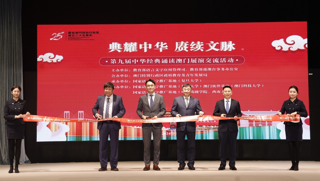 由國家教育部語言文字應用管理司、港澳台事務辦公室主辦,教育及青年發展局合辦,國家語言文字推廣基地(復旦大學)承辦的“第九屆中華經典誦讀澳門展演交流活動”於2024年11月21日假澳門科技大學舉行。國家教育部語言文字應用管理司副司長王暉、教育及青年發展局局長龔志明、中央人民政府駐澳門特別行政區聯絡辦公室教育與青年工作部副部長李勇先、澳門科技大學副校長龐川、澳門中華教育會副理事長呂綺穎、澳門高等教育發展促進會長莫啓明、澳門天主教學校聯會理事長劉麗妹、澳門公職教育協會監事長譚可珍等,以及澳門各中小學學校代表及逾四百名師生出席。