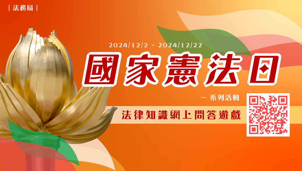 今年是第十一個“國家憲法日”,法務局於2024年12月2日至12月22日(為期21日)期間舉辦“國家憲法日”法律知識網上問答遊戲,透過寓學習於娛樂的遊戲方式,加強社會各界對《憲法》和《澳門基本法》的認識,歡迎本澳居民參加。