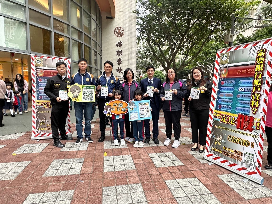 今年以來,司警局開展系列防騙宣傳工作,務求令防騙資訊全面覆蓋校園,包括在全部已加入“學校安全聯絡網”的72個小學校部(其中61個附有幼稚園部)巡迴展示多款大型防騙宣傳海報,讓師生和家長清晰瞭解多種常見電話詐騙的作案手法和防範方法,以提高他們的防騙警覺和能力;司警局關注少年組聯同反詐騙協調中心刑偵人員於放學時段在校園門外主動向家長、學生宣導防騙資訊,提醒他們注意防範詐騙電話和釣魚短訊,以及向他們推薦使用局方的反詐程式,以降低受詐騙犯罪侵害的風險,期間共接觸逾4,000名師生和家長。
