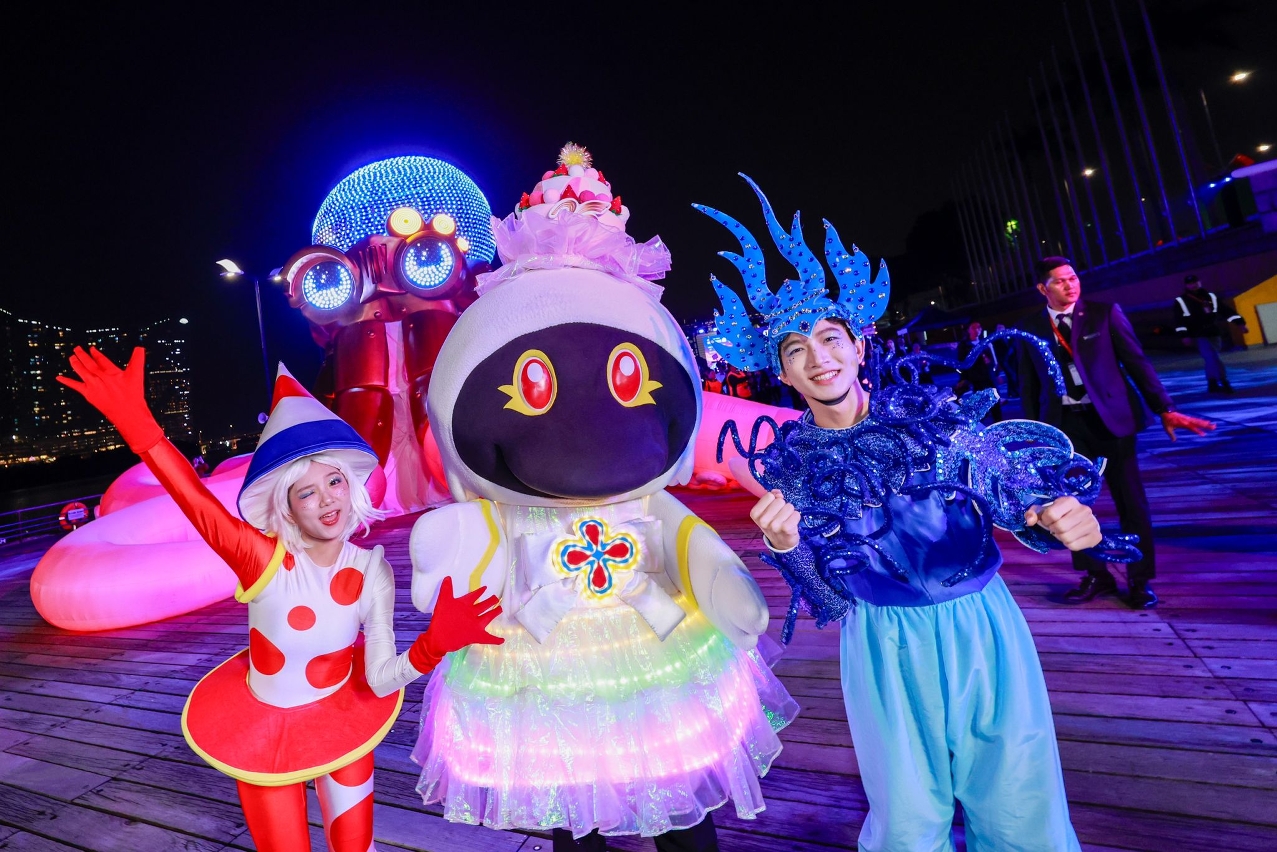 由旅遊局主辦的“慶祝中華人民共和國成立75周年、澳門回歸祖國25周年 2024幻彩耀濠江”今(7日)隆重登場,雲集世界多地藝術家精心打造穿越時空的光影盛宴,與澳門居民及旅客同賀雙慶,促進社區旅遊及夜間經濟,豐富世界旅遊休閒中心內涵。開幕儀式在南灣湖水上活動中心舉行,澳門特別行政區政府經濟財政司司長李偉農、經濟財政司司長辦公室主任辜美玲等主持開幕儀式。