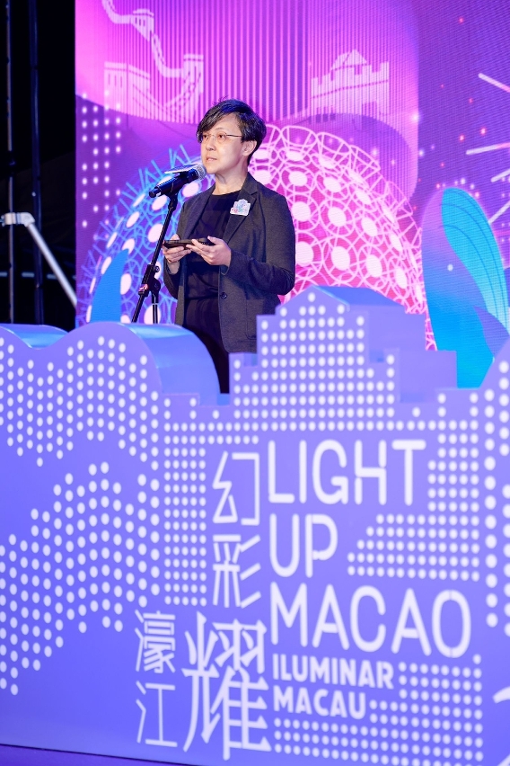 旅遊局局長文綺華致辭時表示,今年“幻彩耀濠江”的藝術裝置及光雕表演由來自全球多地及澳門的藝術家和設計團隊創作。他們的才華和創意點亮澳門各區,為每一位到訪的朋友帶來獨一無二的視覺享受。此活動不僅是跨年盛事,更希望透過跨區活動,鼓勵居民和旅客走進社區,體驗藝術之餘,支持本地商戶,促進社區旅遊與夜經濟。