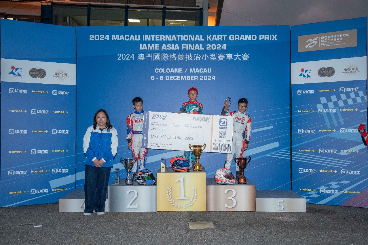 賽事結束後,隨即進行頒獎儀式,頒獎嘉賓包括體育局局長張子軒、中國-澳門汽車總會理事長何比道、金沙中國有限公司行政副主席王英偉、體育局代副局長李詩靈、IAME首席執行官Filippo Fagnani及IAME首席財務官Marco Moretti。