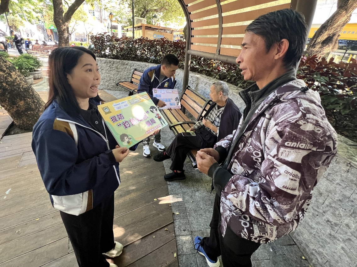 為提醒公眾持續關注和警惕新型騙案,推動警民合作防範電訊網絡詐騙犯罪,司法警察局持續派員走訪本澳各區休憩區開展防騙宣傳工作,向市民講解最新防騙資訊,增強他們的防騙警惕,免墮騙局,期間共接觸逾1,500名市民。
