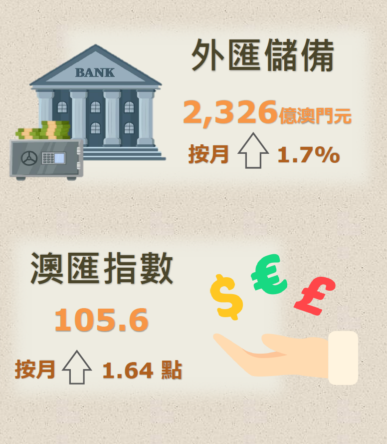 澳門金融管理局今(13)日公佈,2024年11月底澳門特別行政區的外匯儲備資產總額,初步統計為2,326億澳門元(290.2億美元),較2024年10月經修訂總額2,286億澳門元(285.6億美元),上升了1.7%。2024年11月底的外匯資產總額,約相當於2024年10月底澳門流通貨幣的11倍或廣義貨幣供應(M2)中屬於澳門元部分的90.0%。