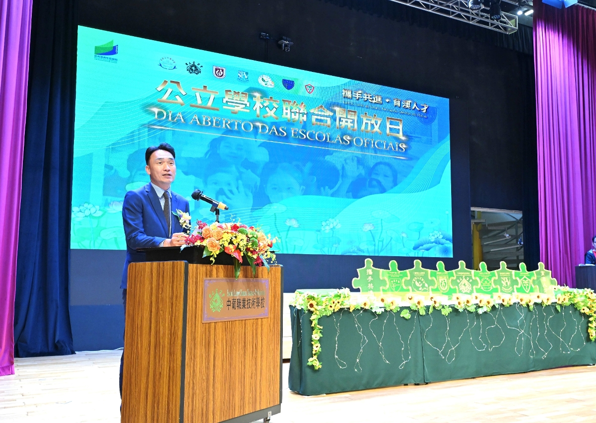 龔志明局長致辭時表示,公立學校致力推動葡語教育工作,於2025/2026學年高美士中葡中學葡文部新增高中課程,石排灣公立學校亦新增初中課程和加強葡語教育,與其他公立學校共同培育中葡雙語複合人才。同時,公立學校一直以“因材施教”為理念,致力提高學生的學習動機,建立學生積極的態度和正面的價值觀,透過整合計劃和完善校園學習環境,為學生提供更便利的升學銜接和多元化的學習活動,為本澳社會培育多元人才。龔志明局長感謝各校校董會成員和全體教職員工,為各公立學校的發展持續出謀獻策,對學生教育工作付出熱誠和努力,並勉勵大家繼續勇於接受挑戰,同心協力,為澳門培育不同範疇的人才。