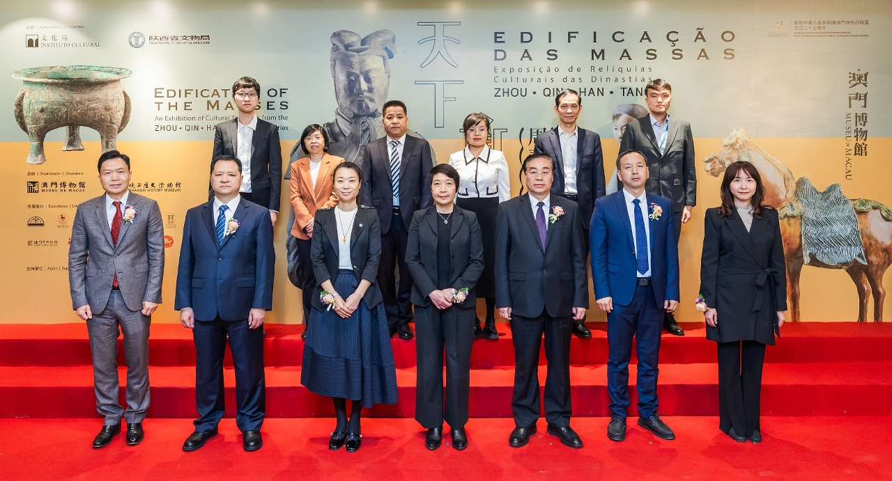 為慶祝中華人民共和國澳門特別行政區成立25周年,由澳門特別行政區政府文化局與陝西省文物局主辦,澳門博物館與陝西歷史博物館承辦,新濠博亞娛樂支持的“天下承風──周秦漢唐文物精華展”今日(12月27日)在澳門博物館開幕,澳門特別行政區政府文化局局長梁惠敏、中央人民政府駐澳門特別行政區聯絡辦公室宣傳文化部副部長白冰、陝西省文物局局長賈強、陝西歷史博物館副館長路智勇、秦始皇帝陵博物院副院長陳志平、新濠博亞娛樂董事鍾玉文及文化局澳門博物館館長盧可茵出席主禮。