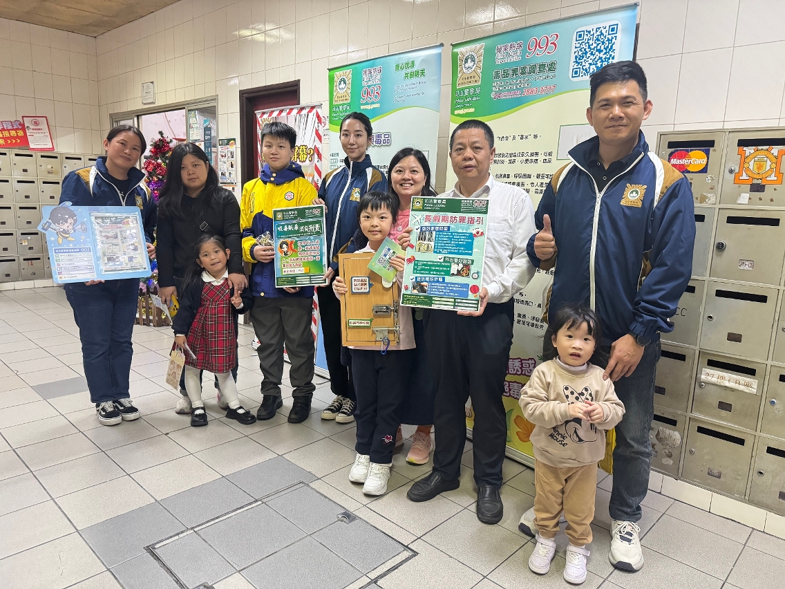 11月5日至12月22日期間,司警局大廈罪案預防組透過本澳各區屋苑的“司警局大廈防罪之友"成員、物業管理公司及大廈業主會協助,在放學及下班時段於屋苑內的大堂及大廈居民出入口舉辦“大廈防罪推廣站"活動,旨在讓更多居民接收到最新防罪資訊,從而提高防罪警覺,免受侵害。