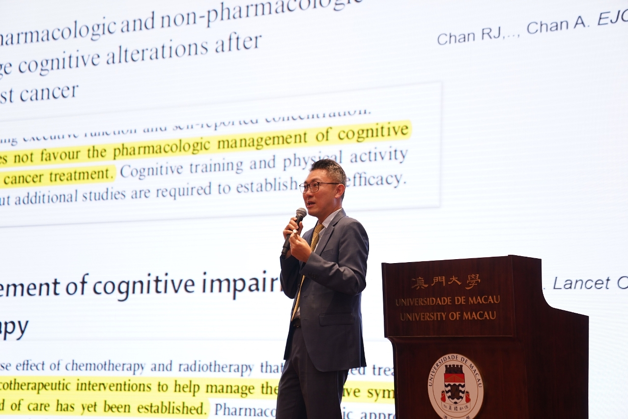 澳大副校長許敬文致辭時表示,Alexandre Chan是藥物治療和腫瘤藥學領域的專家。他亦是新加坡國立癌症中心客座教授,目前是國際癌症支持治療協會(MASCC)的候任主席,以及美國臨床藥學院(ACCP)院士和國際腫瘤藥學從業者協會(ISOPP)會士。Alexandre Chan在醫學和藥學期刊上發表了 290 多篇與癌症支持性療法、癌症生存者等主題相關的論文,其研究項目吸引了美國及新加坡的政府機構、基金會和製藥公司合共超過 700 萬美元的支持。