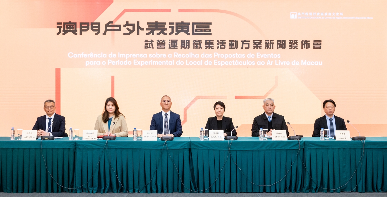 澳門戶外表演區試營運期徵集活動方案新聞發佈會於1月10日在澳門文化中心會議室舉行。文化局局長梁惠敏、警察總局局長助理梁文照、治安警察局副局長梁慶康、旅遊局旅遊產品及活動廳廳長司徒琳麗、土地工務局城市建設廳廳長劉國權及交通事務局交通規劃及建設廳廳長林志劍出席。