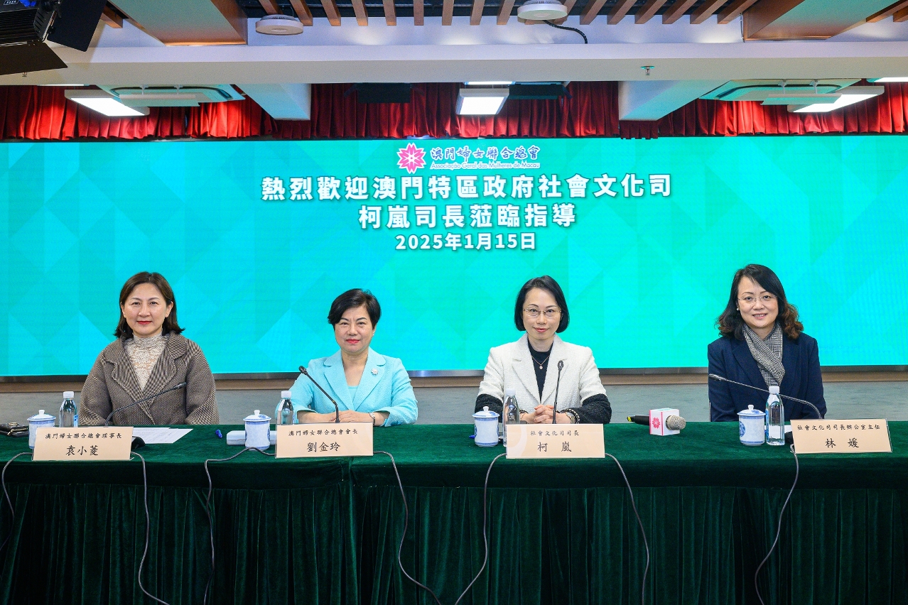 社會文化司司長柯嵐今(15)日繼續拜訪社團,就編製社會文化範疇本年度施政方針聽取意見和建議,下午到澳門婦女聯合總會舉行座談會,並就婦女事務、愛國教育等議題交流意見。