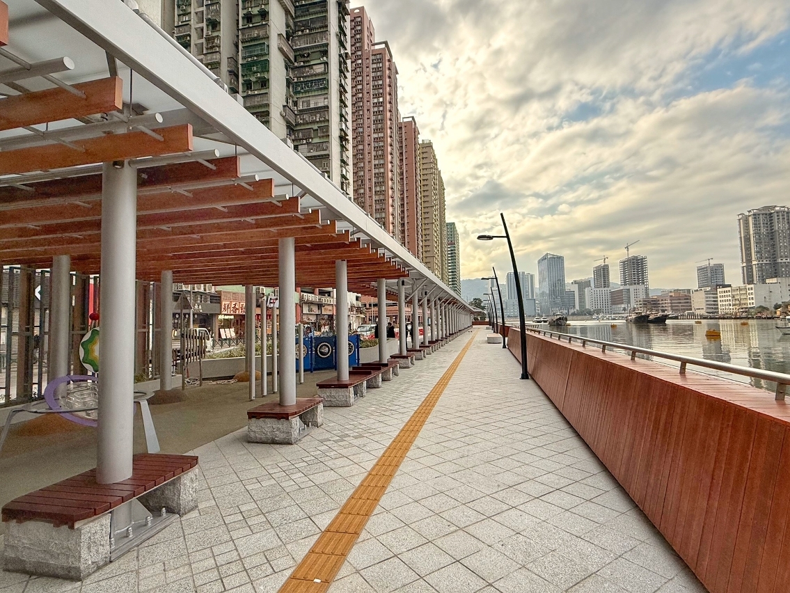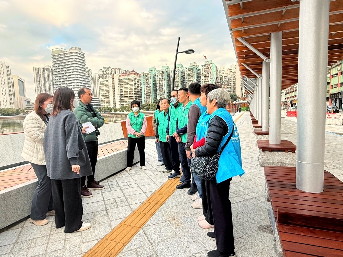 市政署邀筷子基坊會及青洲坊會代表到現場實地介紹休憩區的設施及佈局,並聽取意見。總面積達約2,166平方米的海濱休憩區,設置健身區、兒童互動區、觀景平台等多功能休閒區等,並增加綠化元素,擴闊現有步行環境,透過花圃建設分隔休憩區和行車道路的綠色屏障,整體優化筷子基北灣的休憩設施,為區內居民提供優質戶外休憩空間。