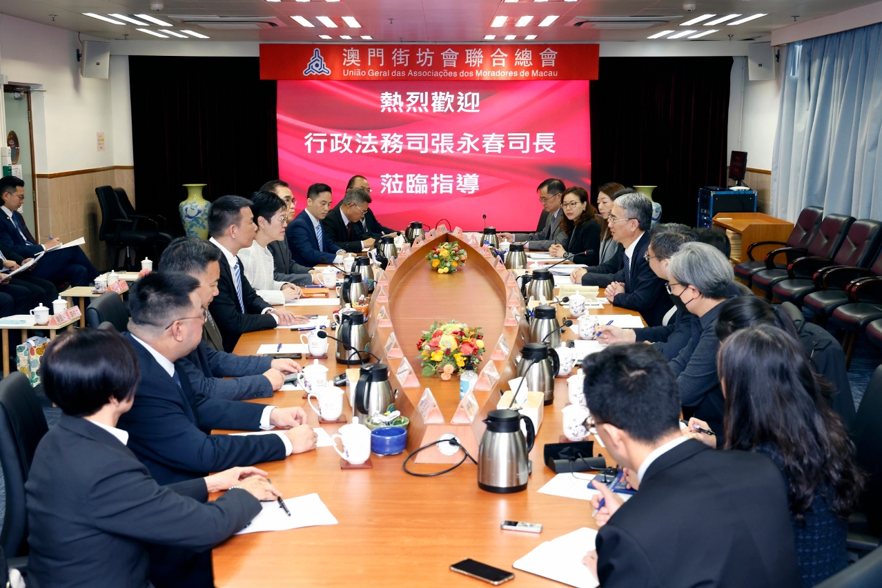 行政法務司司長張永春今(21)日到訪澳門街坊會聯合總會並舉行座談,就編製行政法務範疇本年度施政方針聽取該會的意見和建議。