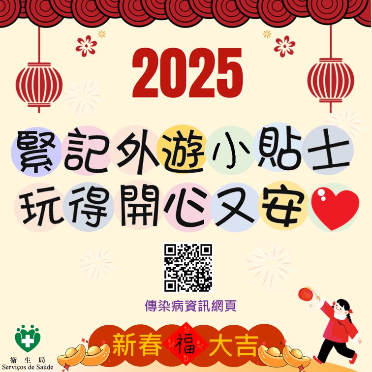 隨着春節假期臨近,不少居民會外遊或探親,為確保健康與安全,衛生局特別提醒居民在外遊期間,應加強個人、食物及環境衛生,注意防範床蝨叮咬,並預防感染登革熱、呼吸道傳染病、胃腸道疾病等,採取足夠有效的預防措施以降低感染疾病的風險。