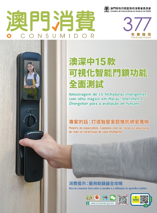 消費者正考慮為家居安裝智能門鎖,第377期《澳門消費》的澳深中可視化智能門鎖測試報告幫到你。消委會提醒消費者在使用智能家電時須注意保護個人信息的安全,澳門電腦商會為消費者提供預防網安風險的專業建議。