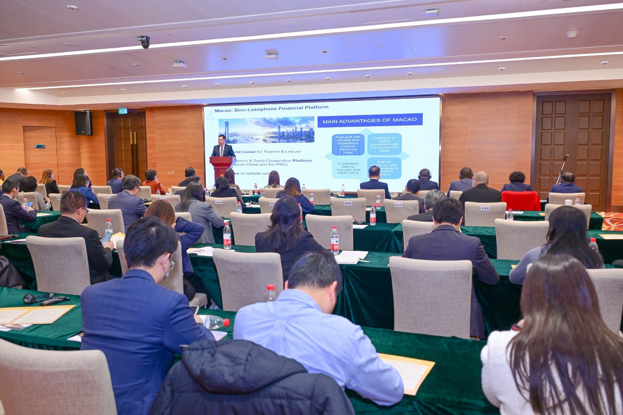 專題分享環節由中葡基金代表介紹葡語國家投資環境及分享投資經驗;此外,研討會邀請在葡語國家開展綠色能源業務的內地企業及具備中葡業務經驗的本地金融機構代表進行專題演講,深入講解企業在葡語國家的綠色項目投資實例,並分享澳門金融機構如何透過金融設施支持能源基建項目,助力葡語國家實現綠色轉型。