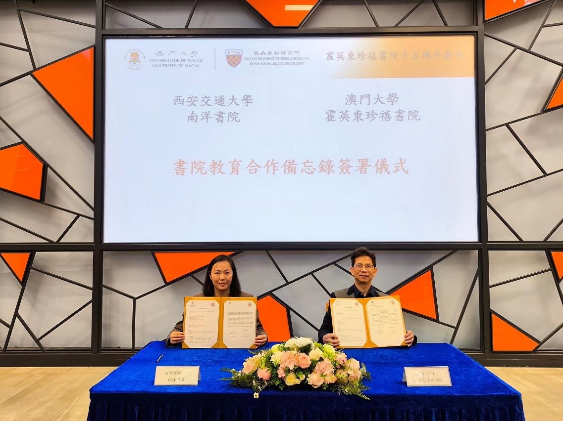 澳門大學霍英東珍禧書院與西安交通大學南洋書院締結為姊妹書院,標誌着兩所書院的合作進入新的里程碑。