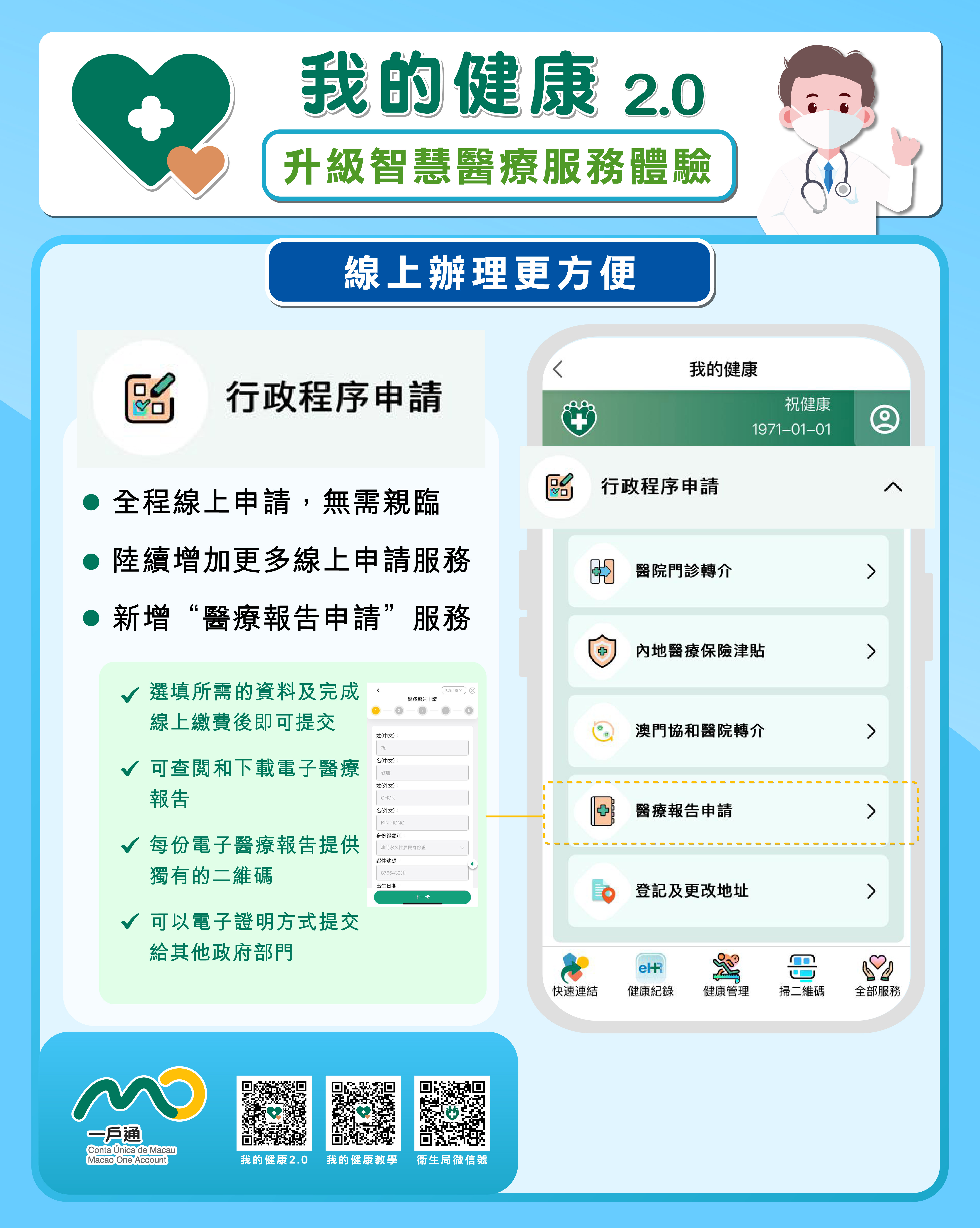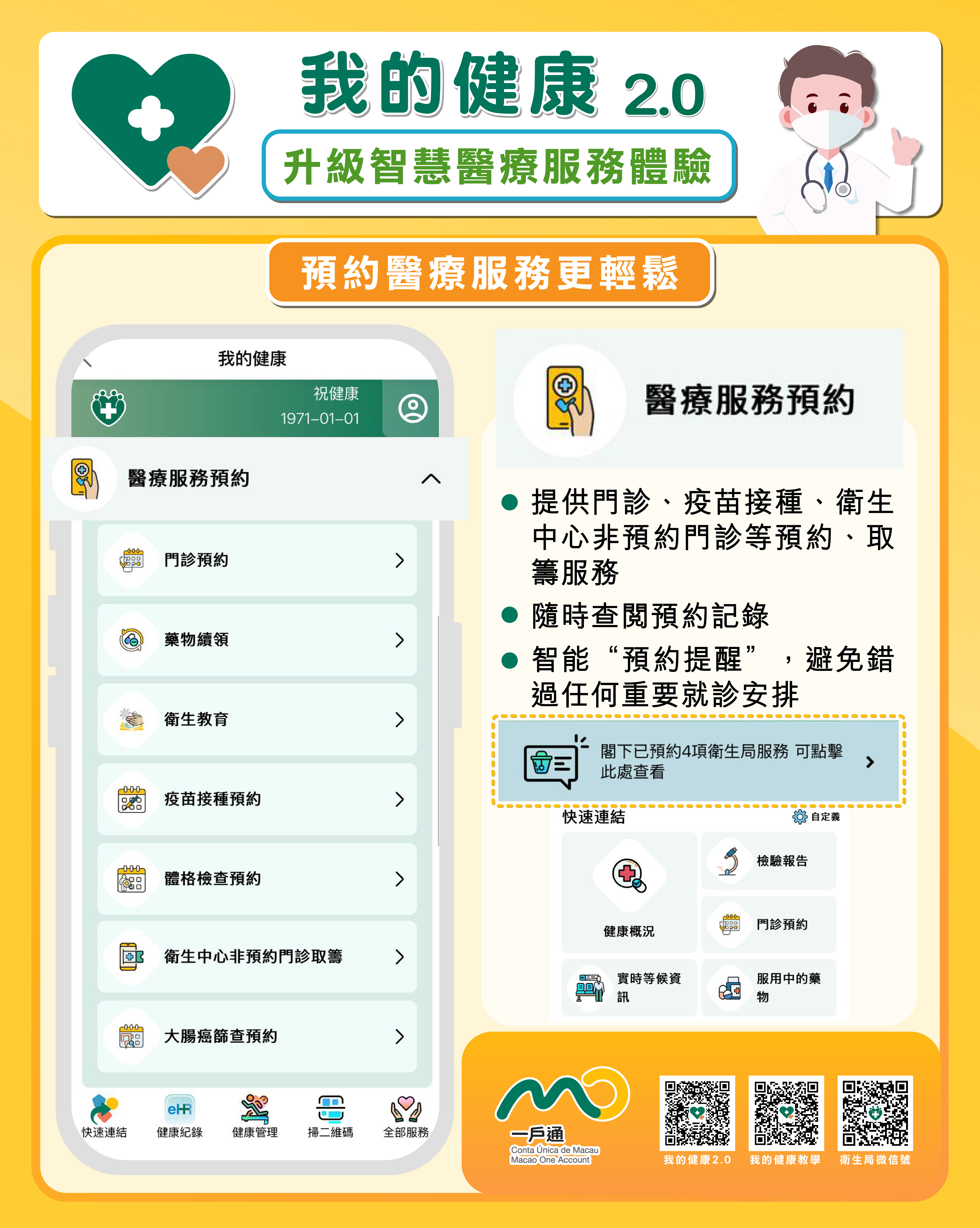 在講解會上,衛生局代表介紹了“我的健康2.0”的重點功能“健康管理”,當中包括健康概況、健康趨勢圖、體重管理等多項服務。“我的健康2.0”在使用者介面上進行了全新設計,提供快速連結和推薦服務、服務分類及功能導航等便捷服務,旨在提升用戶的操作體驗。