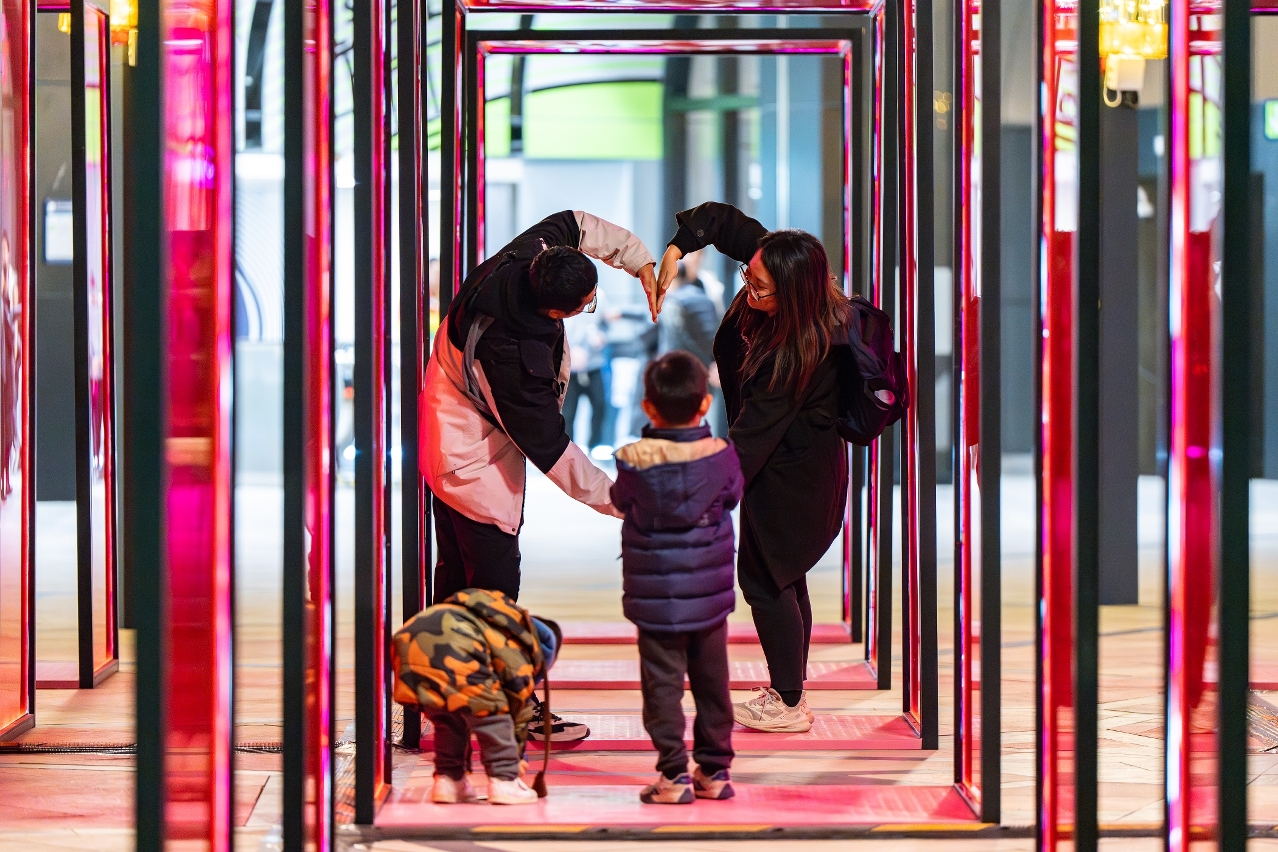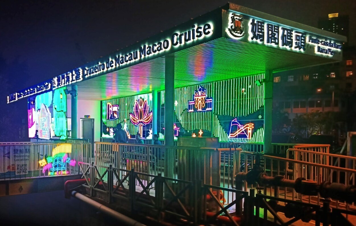 “2024幻彩耀濠江”設有6個展區,其中下環區的分支主題是“未來之脈”。展區的1個旗艦裝置、1個互動裝置及1個燈飾裝置分佈在媽閣交通樞紐地面層廣場、亞婆井前地及媽閣碼頭。