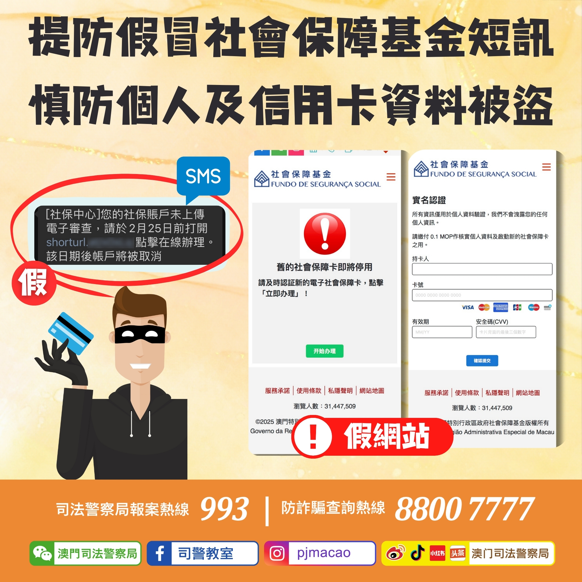 2.如對收到之訊息有懷疑,應先向相關機構進行核實,而社會保障基金不會發出附有任何連結的短訊;