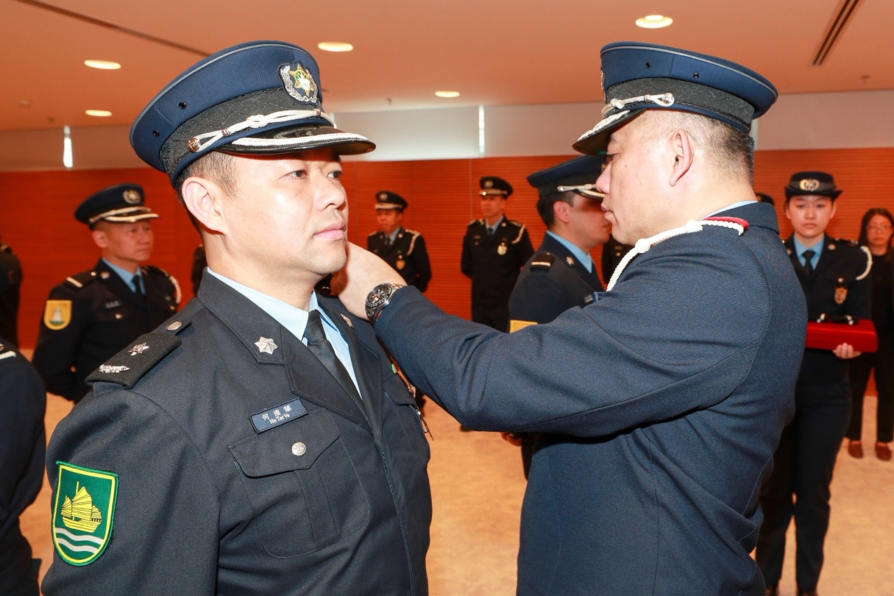 吳錦華局長在儀式中向晉升人員表示祝賀,勉勵他們要嚴於律己,深刻領會並踐行習近平主席在澳門回歸二十五周年講話中的精神,堅持“一國兩制”行穩致遠,守護澳門繁榮穩定,同時勉勵晉升人員要堅守從警的初心,牢記維護特區治安的使命,全心全意為市民服務,並寄語他們要堅守“護法安民”的承諾,繼續優化現有服務,積極拓展新的工作領域,緊密配合國家和特區的持續發展,與全體澳門市民攜手同行,共創美好未來。