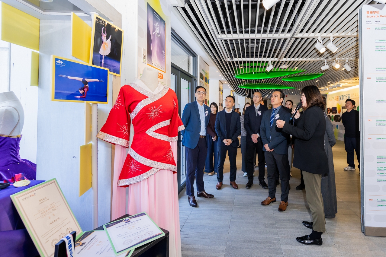 文化局轄下澳門演藝學院舉辦“心響文化之韻‧共譜演藝新篇”澳門演藝學院教學成果展,開幕儀式今日(2月28日)在教育及青年發展局轄下教育資源中心子瞻廊舉行,由文化局澳門演藝學院院長陳理理、教育及青年發展局教育資源廳廳長鄧偉強、文化局澳門演藝學院舞蹈學校校長楊敏健、音樂學校校長劉晨晨、戲劇學校副校長黃天恩,以及中葡職業技術學校校長陳盛疇主禮。開幕儀式上特設演院學生的舞蹈及音樂表演,向嘉賓展示學生的藝術水平。