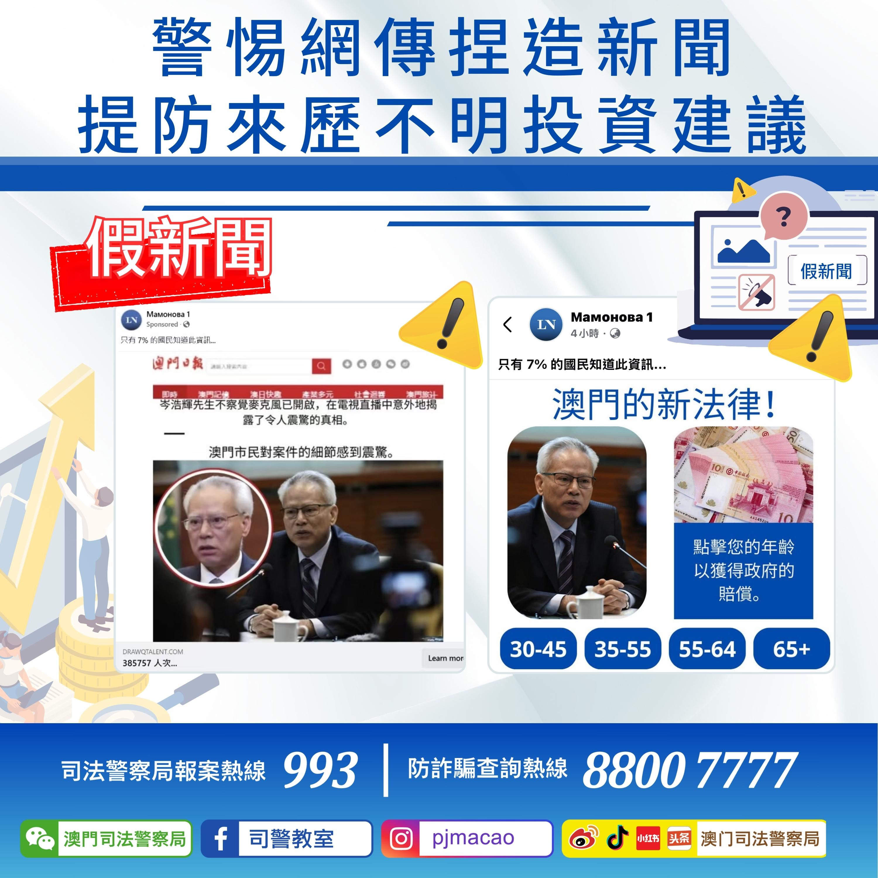 3. 倘有懷疑,可使用司法警察局“反詐程式”查核風險指數,或致電防詐騙查詢熱線88007777或報案熱線993求助。