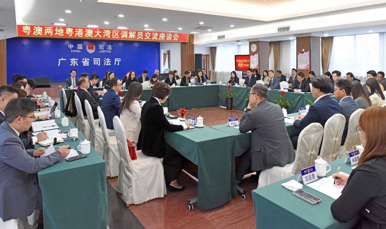 為加強粵澳兩地調解員的交流和合作,促進澳門區調解員對內地調解制度和實務操作的認識,由法務局主辧,40名澳門區調解員參加的“2024年度粵港澳大灣區調解員(澳門區)培訓交流團”日前往廣州交流,並出席粵澳兩地大灣區調解員座談會,聽取廣東省司法廳副廳長陳永康等負責人的介紹。