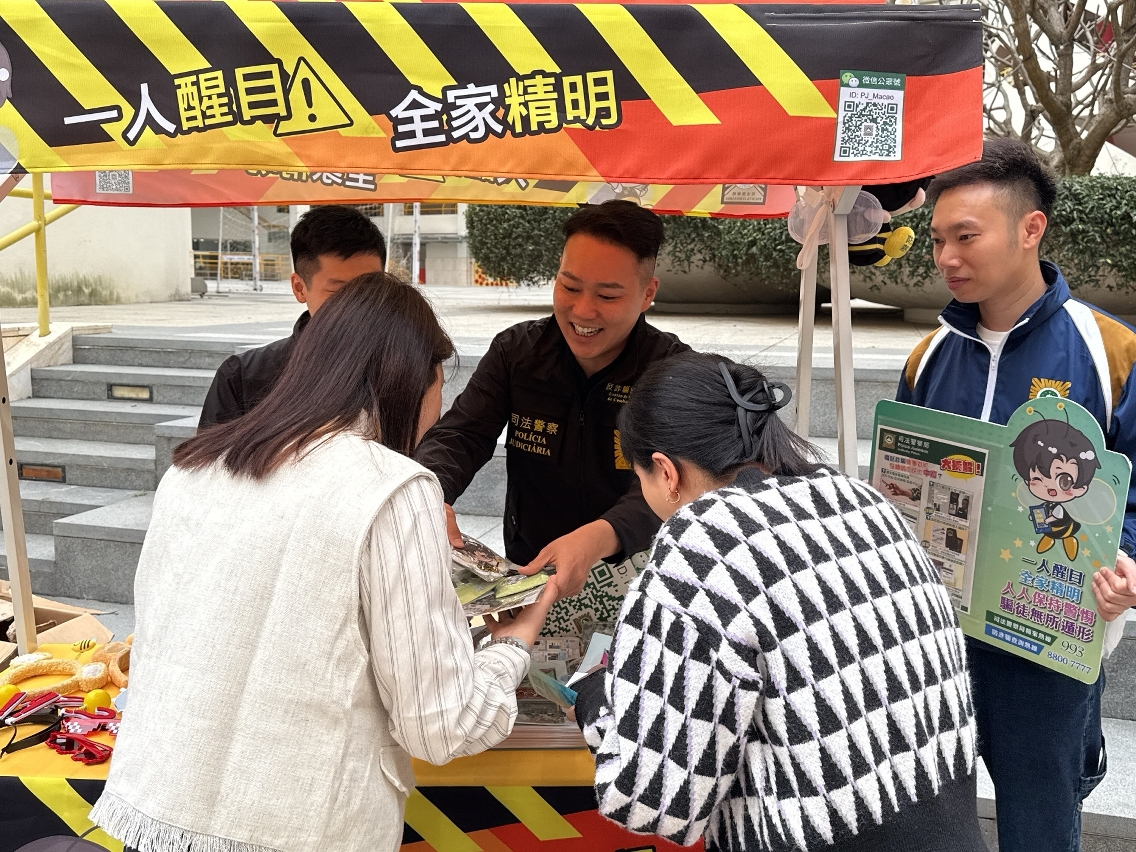 司法警察局持續推進聯動教育界開展的“校園防騙疫苗計劃”,早前落實相關計劃中的“反詐宣傳車”項目,並於2月27日至3月17日期間,先後到訪澳門理工大學、澳門大學、澳門城市大學、澳門旅遊大學、澳門科技大學、聖若瑟大學及澳門鏡湖護理學院七所高等院校進行防騙宣傳,累計接觸超過1,400名師生。活動不僅向師生傳遞反詐防罪資訊,更針對學生的防騙弱點和誤區進行強化教育,進一步提升校園師生防騙識騙意識及能力。