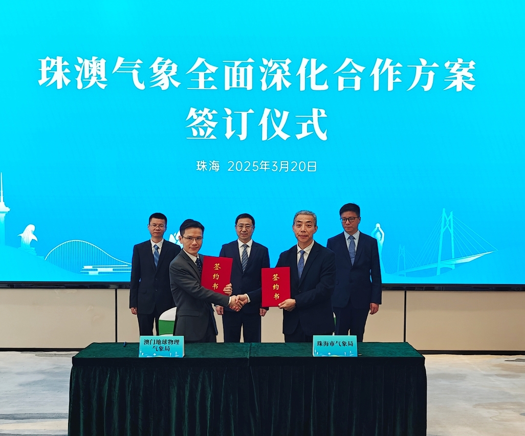 為進一步深化和促進澳門與珠海的氣象事業協同發展,澳門地球物理氣象局局長梁永權與珠海市氣象局局長趙永利於3月20日在珠海市共同簽署《珠澳氣象全面深化合作方案》,標誌著珠澳兩地的氣象事業進入全方位的合作發展新階段。