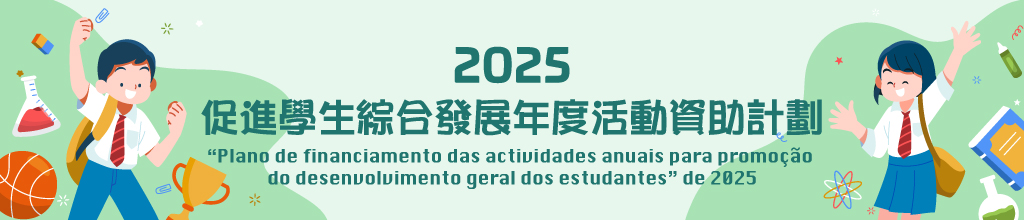 2025年 “促進學生綜合發展年度活動資助計劃” 將於2025年4月1日至4月30日接受第二輪申請,資助對象為在澳門依法成立的非牟利社團和澳門私立高等院校,以及持澳門居民身份證、並在澳門高等院校修讀高等教育課程的學生。