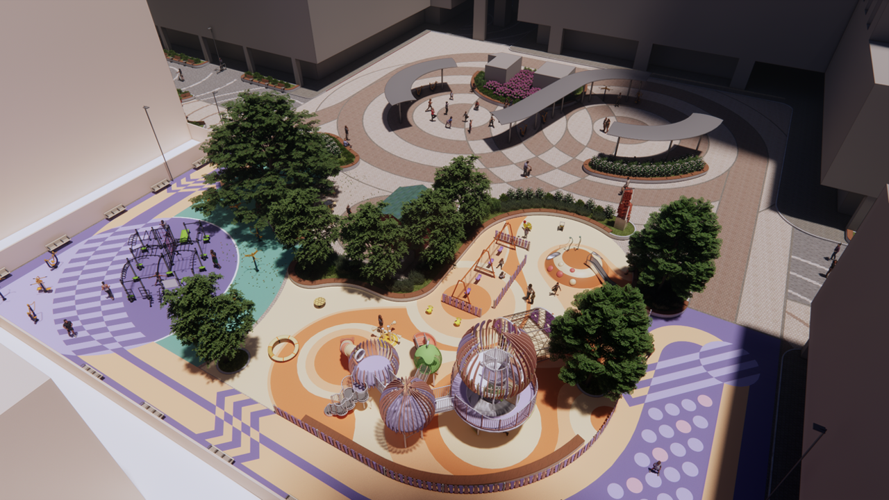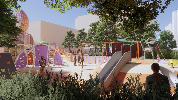 平民新村休憩區,面積約1,680平方米,休憩區周邊有多個社福教育機構及長者中心,將重新規劃場地,打造特色亮點休憩區,引入花卉造型的架空遊樂設施及遊具組合,創造優質親子空間。同時,兼顧長者及特殊人士的需要,增加了合適健身設施數量和種類,豐富共融體驗,加設遮陽擋雨設施,提升休憩舒適度。