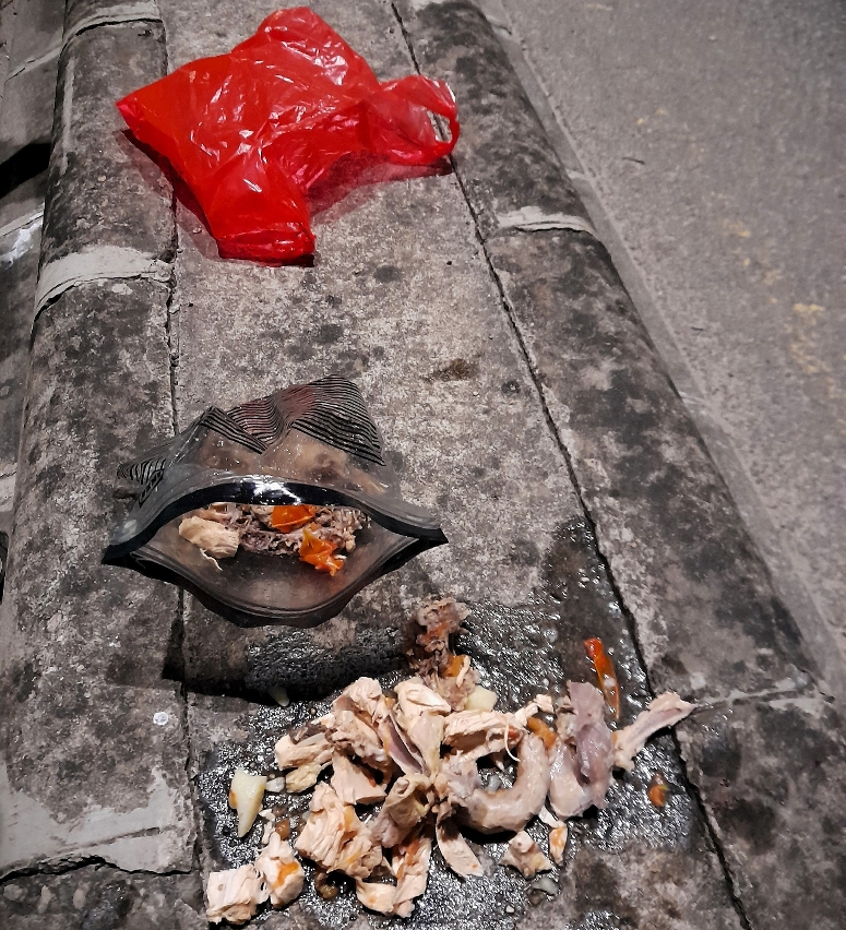 市政署再三呼籲市民切勿餵飼流浪動物,遺留的食物殘渣除嚴重影響環境衛生外,亦會衍生流浪動物聚集,構成公共安全及環境衛生隱患。