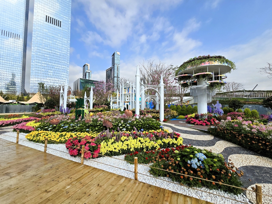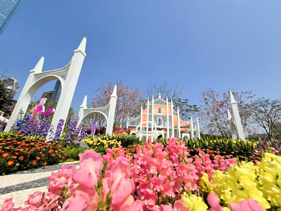 2025粵港澳大灣區花園大賽由三月二十八日至四月六日在深圳筆架山體育公園舉行,澳門園區以大三巴牌坊作為視覺設計主軸,配以主路徑的葡式碎石路,象徵澳門深厚文化底蘊。展場中間設置了一座雕塑打卡點─空中風鈴舞臺,是花展區的亮點之一,宛若花語交響的音樂會現場,彰顯了澳門作為東亞文化之都的獨特魅力。澳門園區內同時樹立象徵運動員英姿的剪影,藉此宣傳第十五屆全國運動會(澳門賽區)。