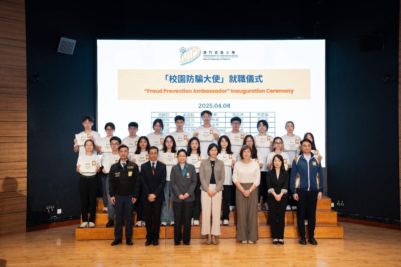 澳門旅遊大學積極響應司法警察局與教育及青年發展局合作推出的“校園防騙疫苗計劃”,致力在校園宣傳防騙資訊,提升學生反詐意識。於3月中透過線上形式推出“防詐騙網上問答快夾準之逃離騙局”比賽,吸引455名學生踴躍參與,活動同期成功選拔50名學生擔任首屆“校園防騙大使”,並於2025年4月8日順利舉行比賽頒獎及就職儀式。