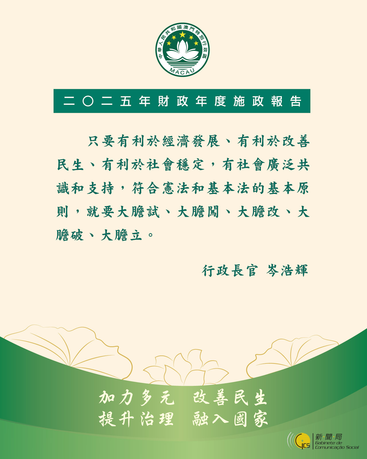 二〇二五年財政年度施政報告---加強統籌協調機制,開創特區發展新局面