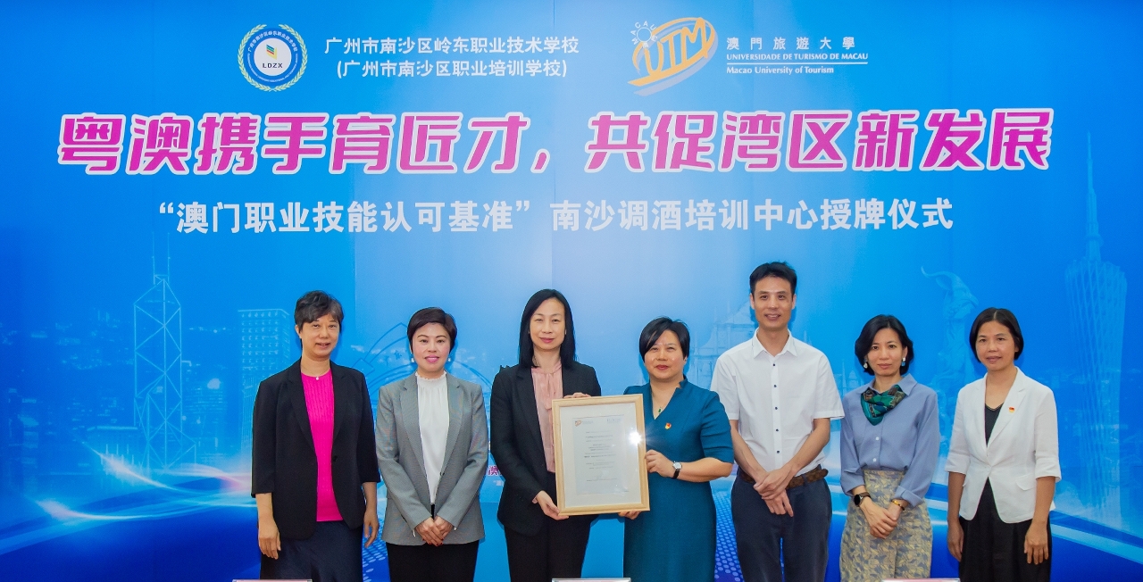 2025年4月14日,“澳門職業技能認可基準(MORS)”調酒培訓中心授牌儀式在廣州市南沙區嶺東職業技術學校舉行。澳門旅遊大學、廣州市南沙區教育局及南沙區嶺東職業技術學校領導及代表齊聚一堂,共同見證粵澳職業教育合作又一重要時刻。