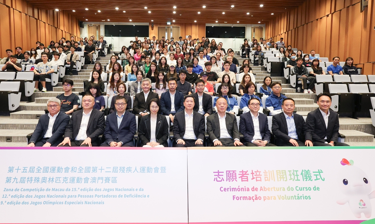 第十五屆全國運動會和全國第十二屆殘疾人運動會暨第九屆特殊奧林匹克運動會(下稱“十五運會和殘特奧會”)澳門賽區志願者培訓開班儀式今(21)日在運動員培訓及集訓中心演講廳舉行,國家體育總局局長、十五運組委會主任高志丹,及十五運會及殘特奧會澳門賽區組委會主席、社會文化司司長柯嵐等嘉賓出席,標誌著澳門賽區志願者工作進入更系統化培訓階段。